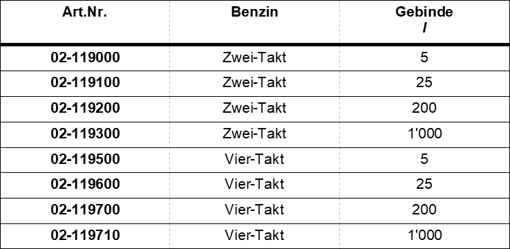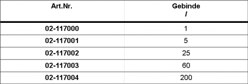 Betriebsfertiges Gemisch; kann mehrere Jahre problemlos gelagert werden.