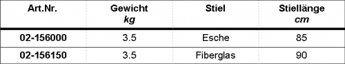 Geschmiedet, mit extra starkem Beschlag, mit ovalem Eschenstiel, Stiellänge 150cm.