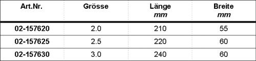 Schlagfest, mit flachen Backen und Kerben, Länge 260 mm, Breite 50 mm.