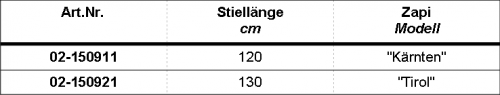 Mit geschweiftem Eschenstiel, Grösse 1'000, Stiellänge 120cm.
