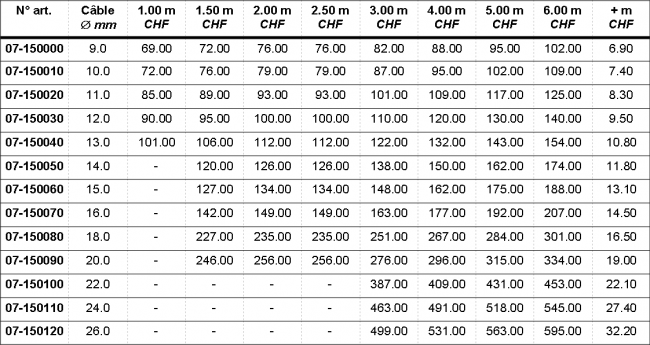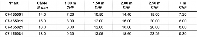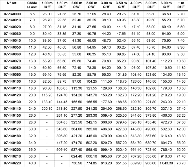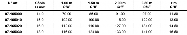 En câble zingué à 6 torons, et âme métallique. Sertie à une extrémité avec douille terminale, l'autre extrémité avec boucle manchonnée.