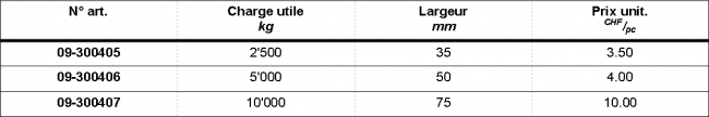 Classe de qualité 10. Interchangeable, pour dispositifs de levage en fibres textiles.